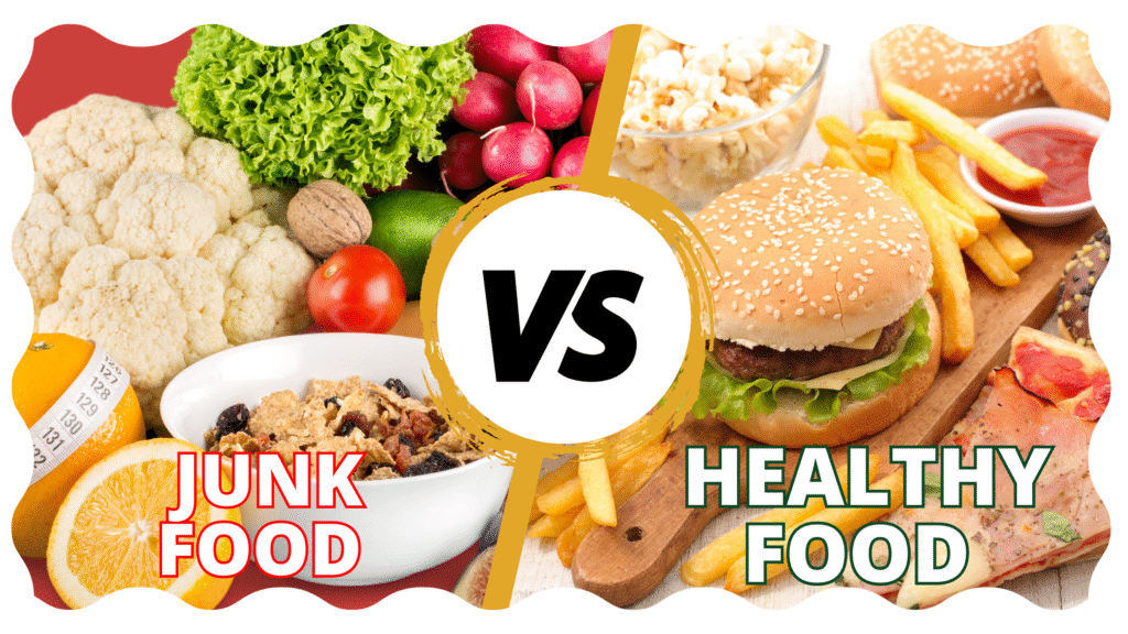 उबली सब्ज़ी, दाल, रोटीतला-भुना खाना, जंक फूड